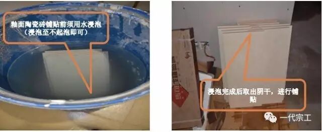 1、铺贴釉面陶瓷地面砖前,应先将陶瓷地面砖浸泡阴干(浸泡至不起气泡即可取出阴干)。