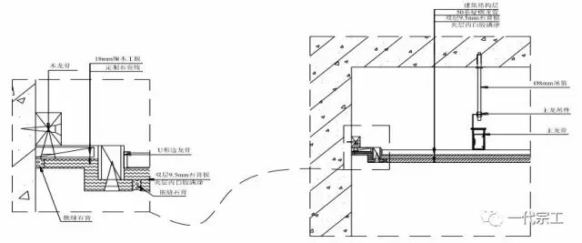 2、各类石膏板天花吊顶长度超过15m 的应预留伸缩缝,且伸缩缝两边应设置独立的主副龙骨。