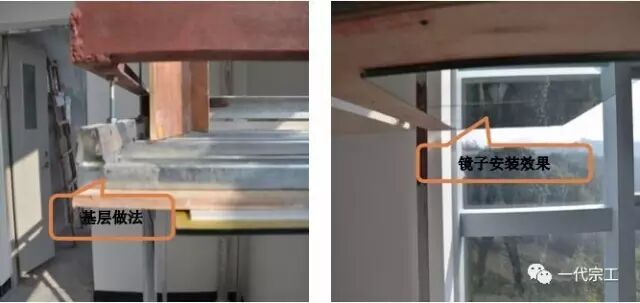 3、玻璃/镜子面无固定件安装的采用结构胶粘接在基层板上,胶干前下撑支架固定,胶干牢固后拆除支架。