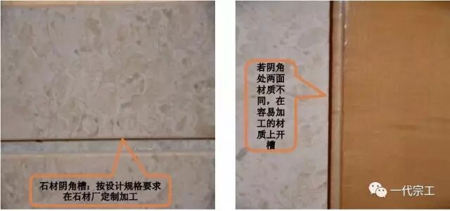 4、其它阴角槽:若阴角处两面材质不同,在容易加工的材质上开槽。