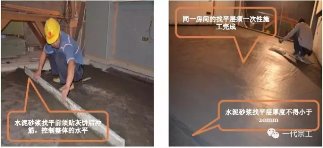 3、同一房间的找平层应一次性施工完成,不得留置施工缝和接槎接头。