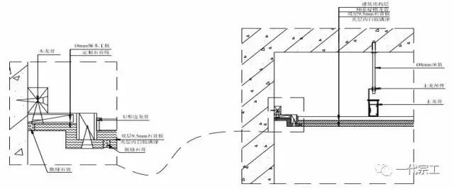 三、吊顶工程 1 轻钢龙骨石膏板吊顶施工工艺 节点大样:
