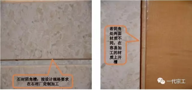 3、石材阴角槽:按设计规格要求在石材厂定制加工。